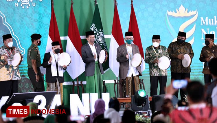 TIMES Tarakan/Presiden Jokowi (Joko Widodo) membuka secara resmi Muktamar Ke-34 Nahdlatul Ulama di Pondok Pesantren Darussa’adah, Gunung Sugih, Lampung Tengah, Rabu (22/12/2021). (FOTO: Moh Ramli/TIMES Indonesia)